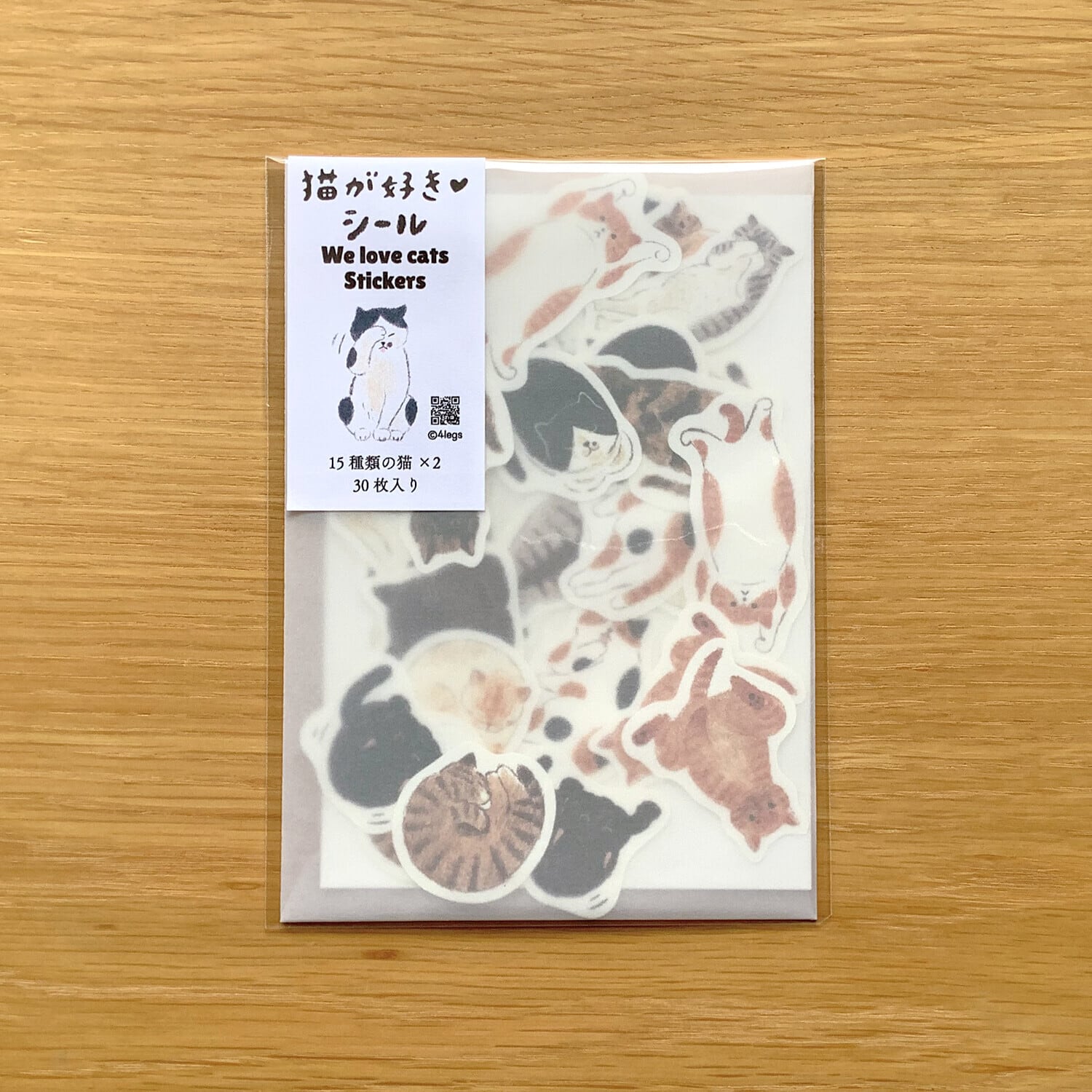 かわいい猫の仕草を15種類、ひとつひとつ描いてフレークシールにいたしました。