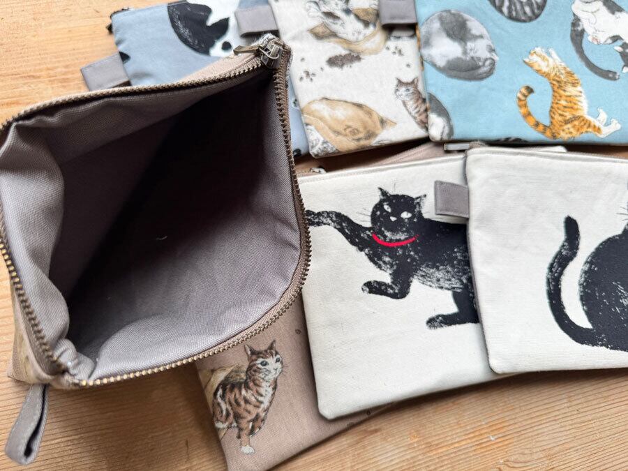 猫柄のぺたんこポーチ、ミニミニトート、猫柄まんまるストラップ