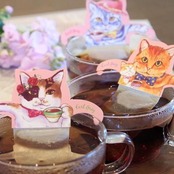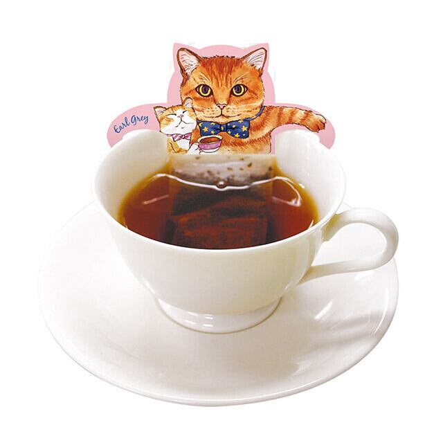 デザインされたタグをカップのふちにかけて使うタイプのねこ型ティーバッグ。