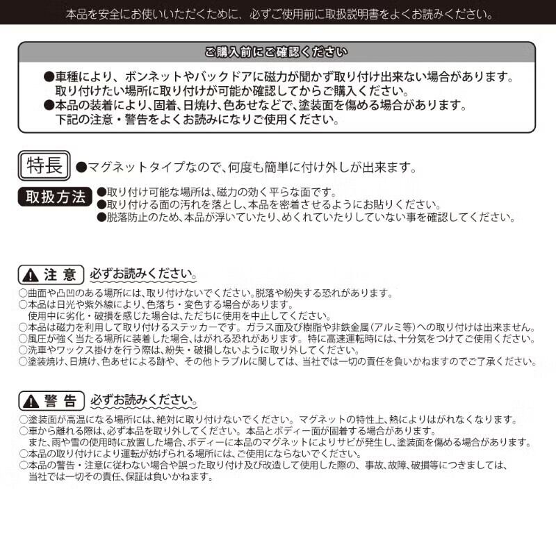 ※磁石が付かないボディ素材(アルミ・CFRP・グラスファイバー等)の車種には装着できません。ご購入の前によくご確認ください。