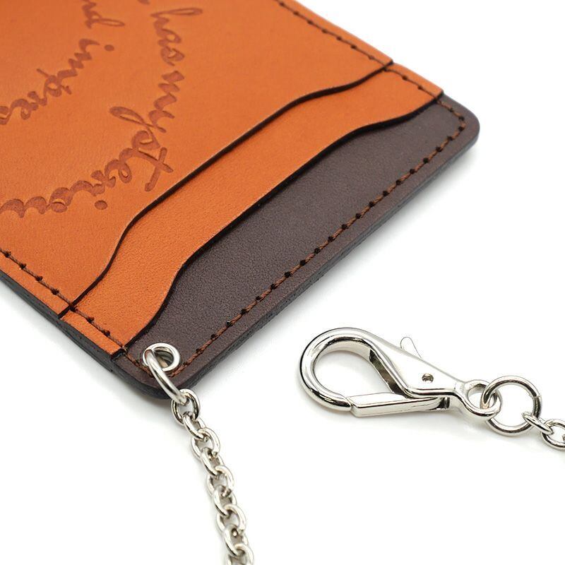 使いやすいシンプル一面パスケース。飽きずに使える型押しデザインです。表に2つ裏に1つカードポケットがあります。バッグに取り付けられるナスカンチェーン付き。
