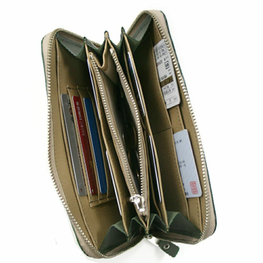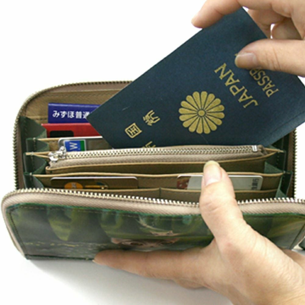 高さのあるお財布型なので、中身が増えてもファスナーがしっかり閉まりやすく、パスポートや通帳も収納が可能です。