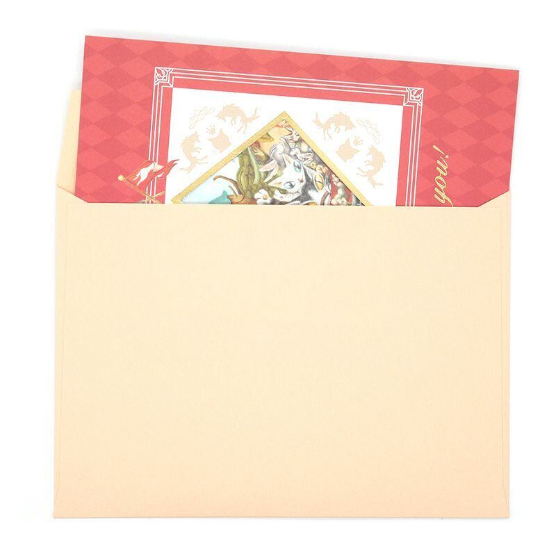 金箔押しの窓から中の絵が見える仕掛けのメッセージカードです。カードを収められる封筒付き。