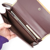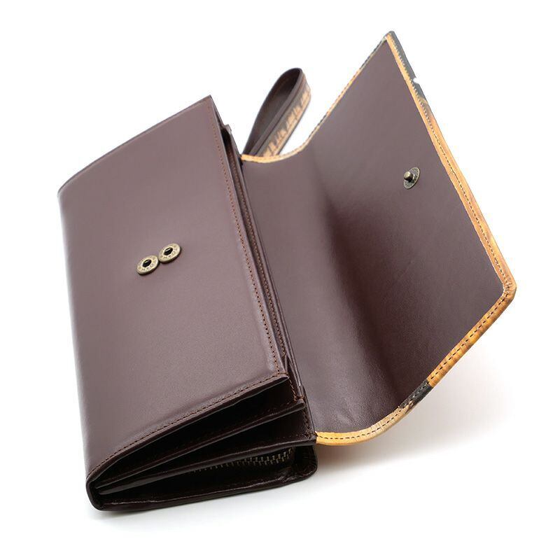 被せを開けずに使える外付け小銭入れがとにかく便利な長財布。ポイントになっている大きめストラップも、ファスナーの開きやすさをアシストします。被せを開けるとすぐにお札やカードが取り出せるシンプルで使いやすいデザイン。新札を折らずに収納できる長財布は、また注目を集めるアイテムになっています。