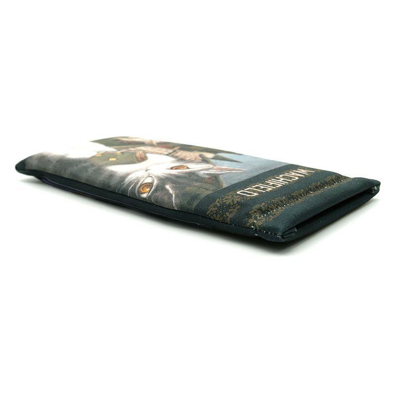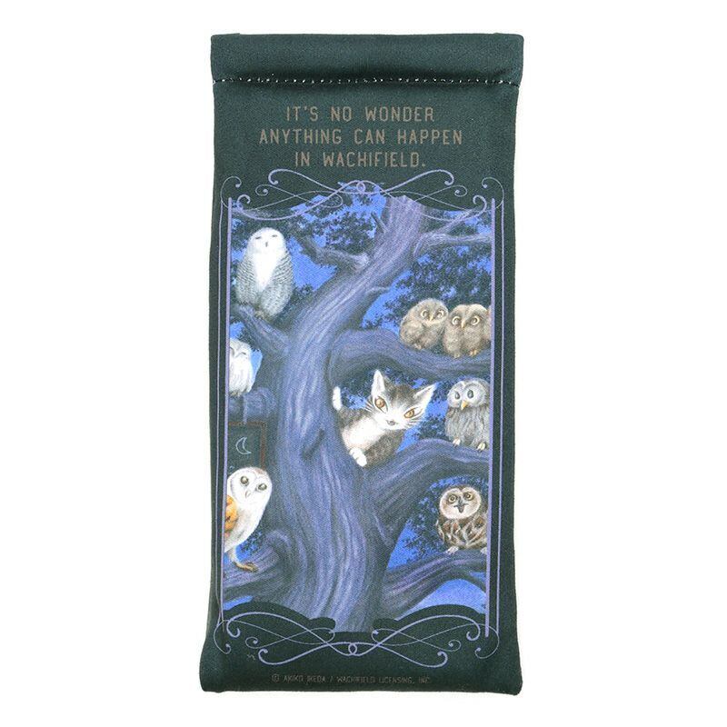 アートが美しいソフトメガネ入れ。本体はウレタン入りで、手ざわりはふかふかです。表面はマイクロファイバー素材なのでメガネを拭く事もできます。開口部は留め具のない便利なバネ仕様となっており、口の両端を押さえるとパカッと開きます。